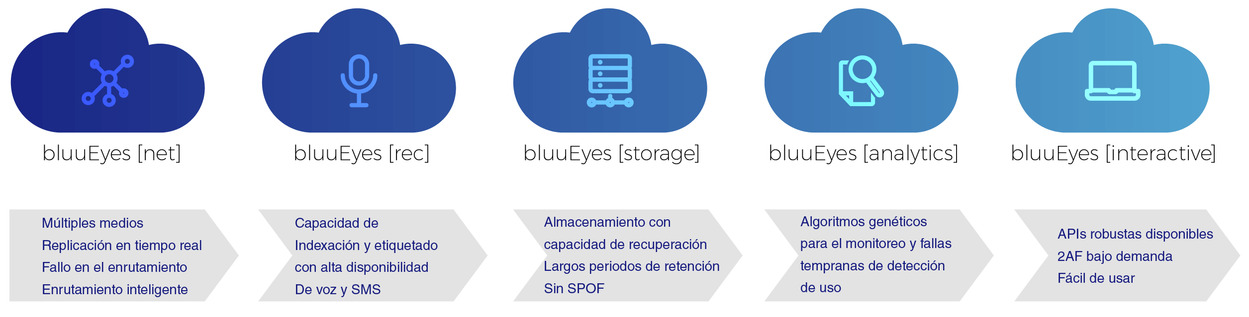 • BluuEyes Es una solución innovadora orientada a la integración de múltiples servicios de grabación de comunicaciones electrónicas orientados al cumplimiento normativo.